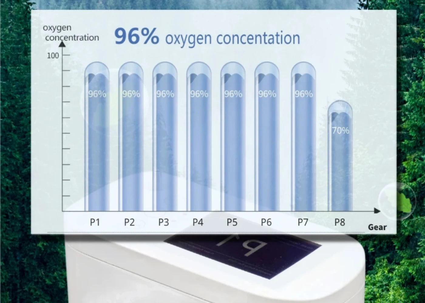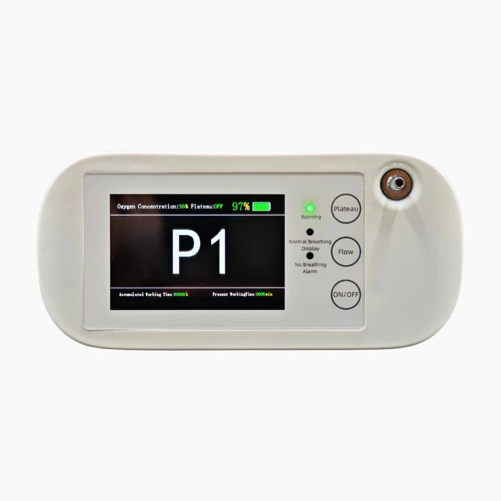 Der BE12 verfügt über einstellbare Gänge von P1 bis P8. P1–P6 sind Pulsflussmodi, die einem kontinuierlichen Durchfluss von 1–6 Litern entsprechen. P7 ist der Festfrequenzmodus, wobei die Sauerstoffkonzentration in den Stufen P1–P7 bis zu 96%±3% erreichen kann. P8 ist der kontinuierliche Flussmodus, in dem die Sauerstoffkonzentration bis zu 70%±3% beträgt.